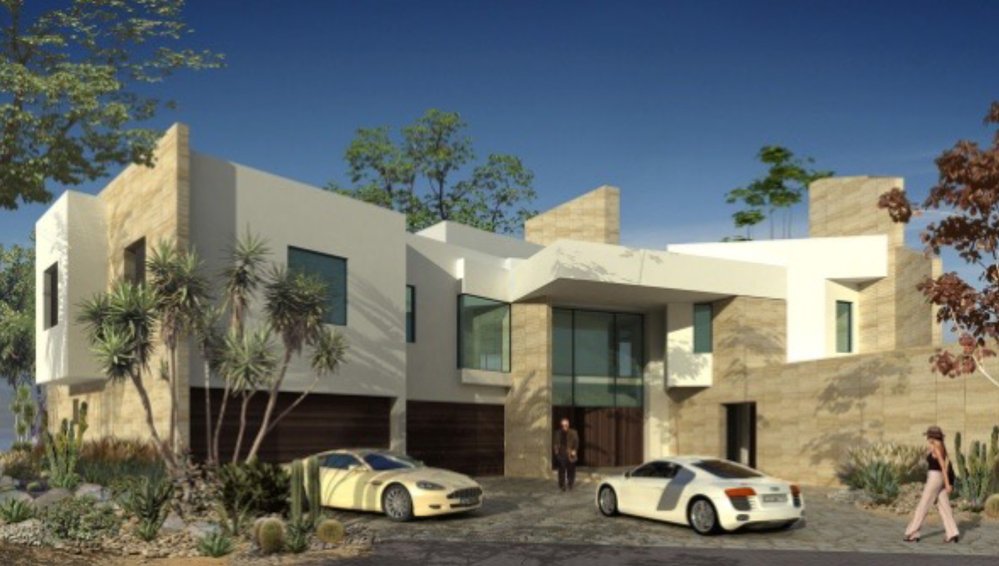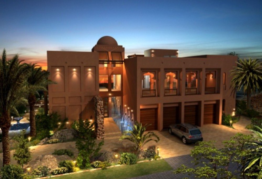 Contemporary Moroccan-style architecture with a plan based on a traditional Marrakesh townhouse layout. Six bedrooms including two master suites all ensuite, housekeeper and chauffeur’s accommodation. three living rooms, three dining rooms, study, home theatre, elevator, two kitchens, first floor pantry, internal courtyard, several water features amid natural desert landscape, large swimming pool. Full roof terrace and direct beach access. 1056m2.