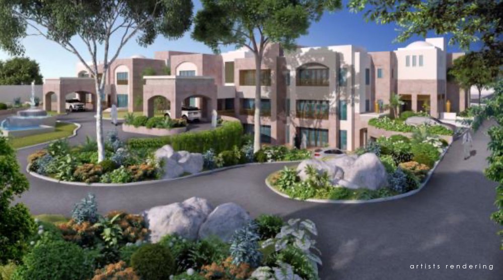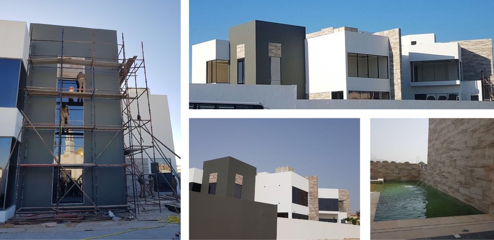 The development of two plots surrounding the ruling family cemetery in Abu Dhabi accommodating a gated community of four-bedroom townhouses, four and five-bedroom villas, and twelve G+5 apartment buildings. Apartment parking is all underground and both plots have large amounts of green space and public facilities for recreation, swimming and children's play. As part of the final development, the overall style was revised in the final design stages from a contemporary concept towards a more subtle local ethnic flavour.