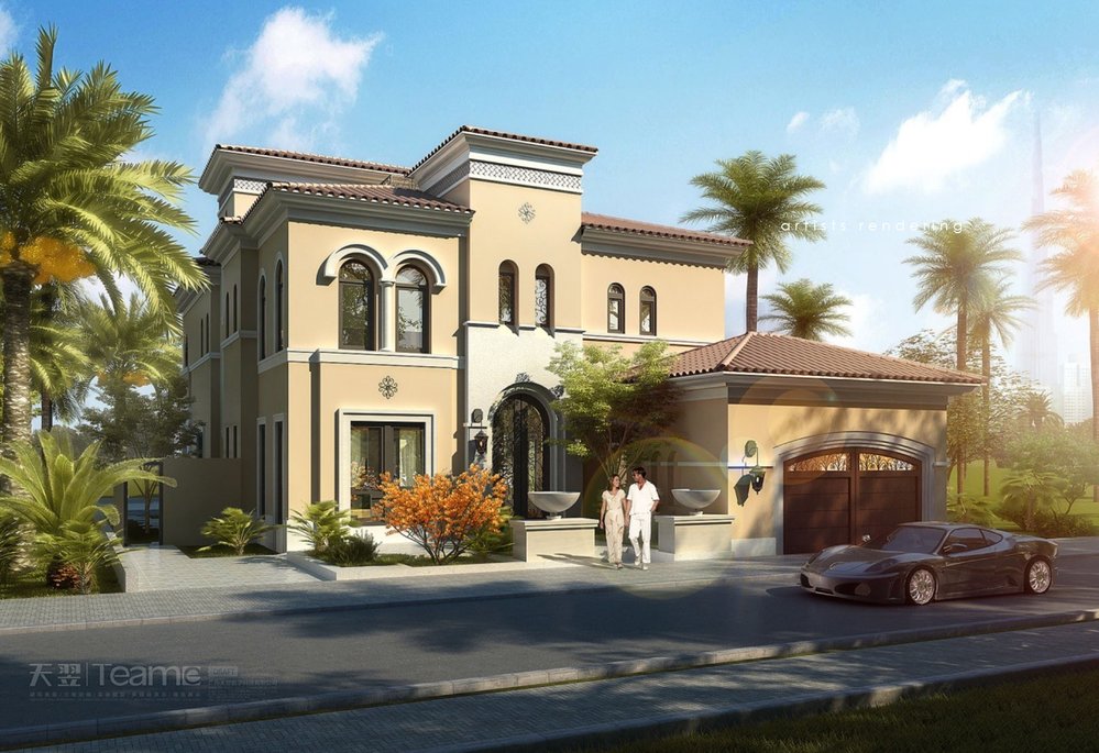 68 Mediterranean villas in a choice of five styles in an Italian themed resort. It is only one of sixteen communities sited in a lush green setting around two world class golf courses in central Dubai .