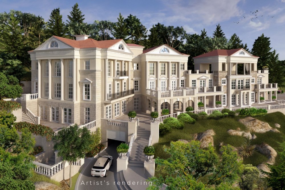 An amalgamation of styles emulating two Tuscan farmhouses renovated with classical Italian architecture. Five bedrooms with ensuite and with separate guest loft, housekeeper and chauffeur’s accommodation. four living rooms, three dining rooms, study, home theatre, elevator, two kitchens, first floor pantry, internal courtyard, outdoor entertaining gazebo, large swimming pool. Direct beach access. 1050m2.