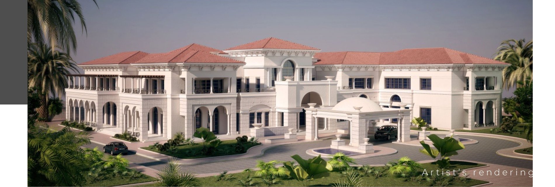 An amalgamation of classic Arabic and Moroccan styles, a formal residence with separate men’s and woman’s majlis each with their own washrooms and private courtyards. Plus separate men's sitting room/office. Seven bedrooms including two master suites and a ground floor guest suite, all with ensuite bathrooms. Grand split-circular staircase, formal dining, family dining, two family living spaces. Indoor family kitchen and first floor pantry, separate outdoor main kitchen with staff accommodation. Swimming pool and BBQ area. Six-car garaging.